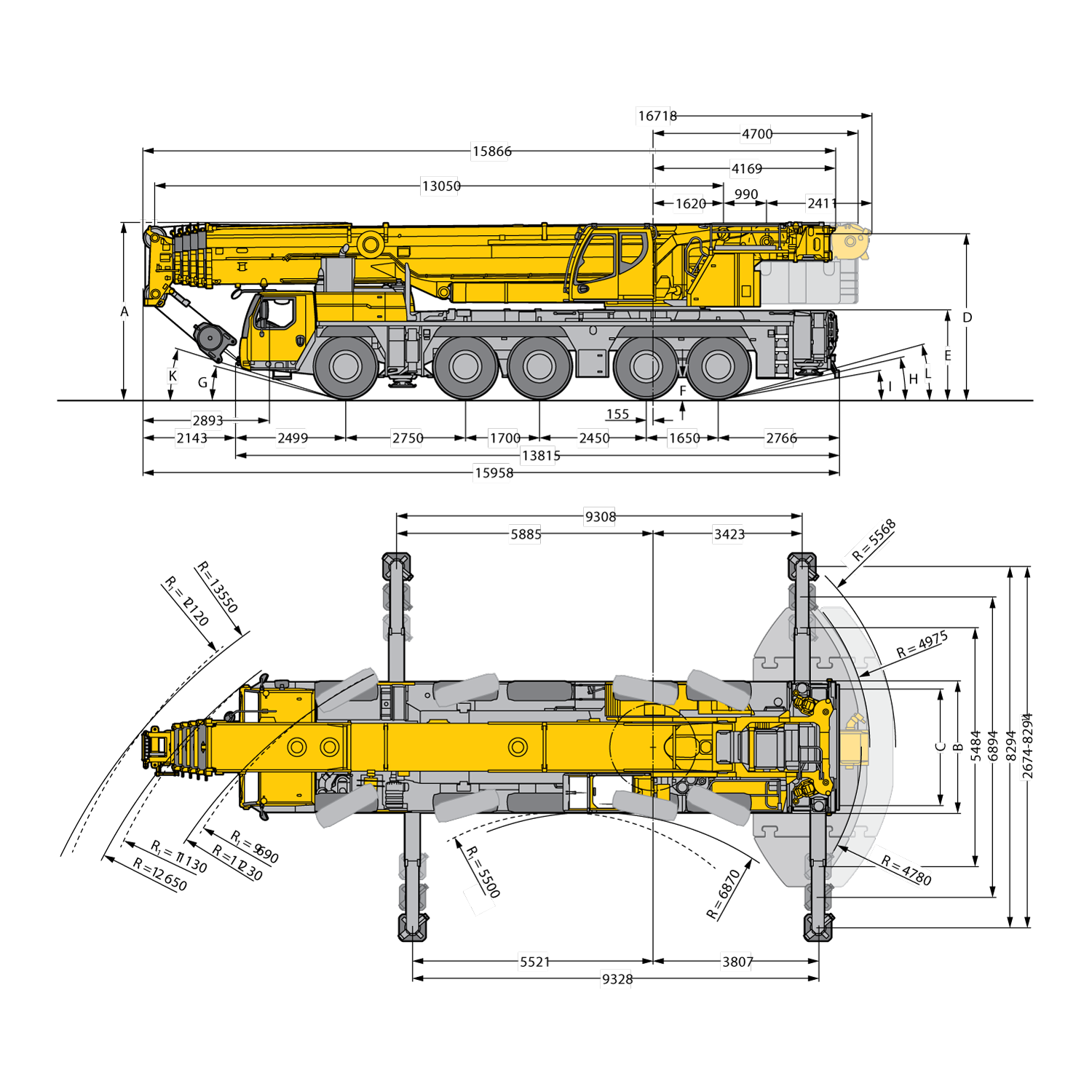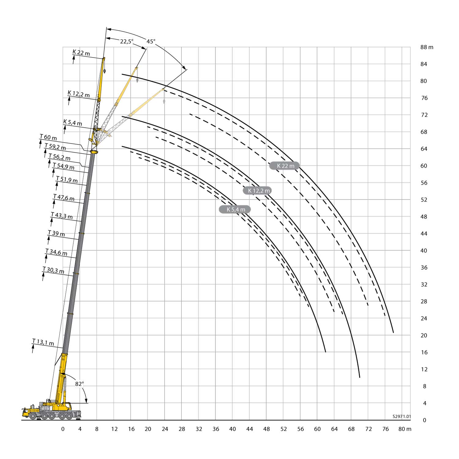 • Flèche télescopique : 13,1 m à 60 m